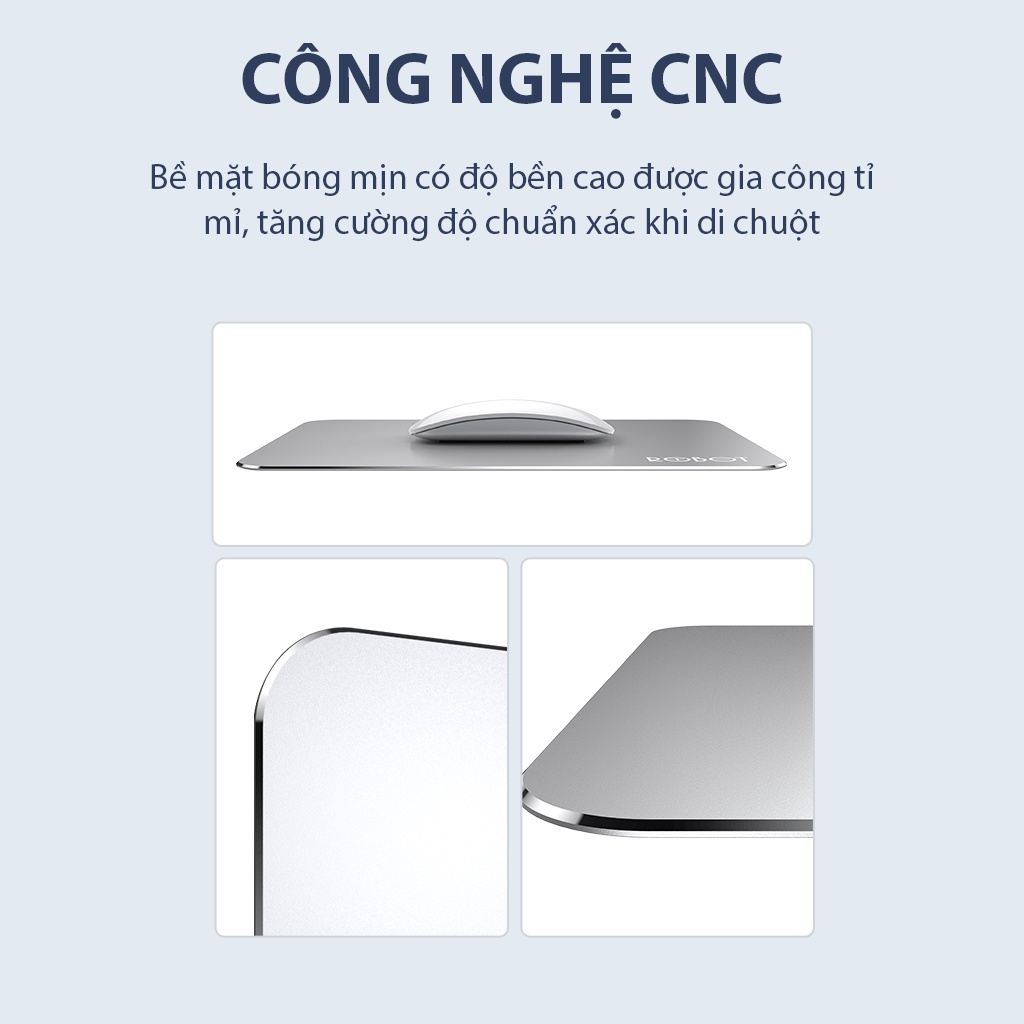 - Tấm lót chuột được phủ bề mặt bằng chất liệu hợp kim nhôm, bề mặt xử lí bóng mịn giúp cho thao tác chuột thoải mái mượt mà.