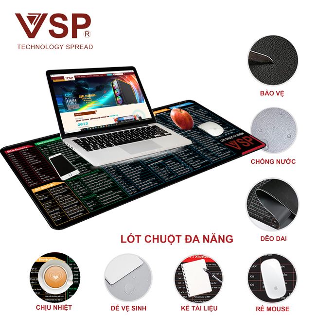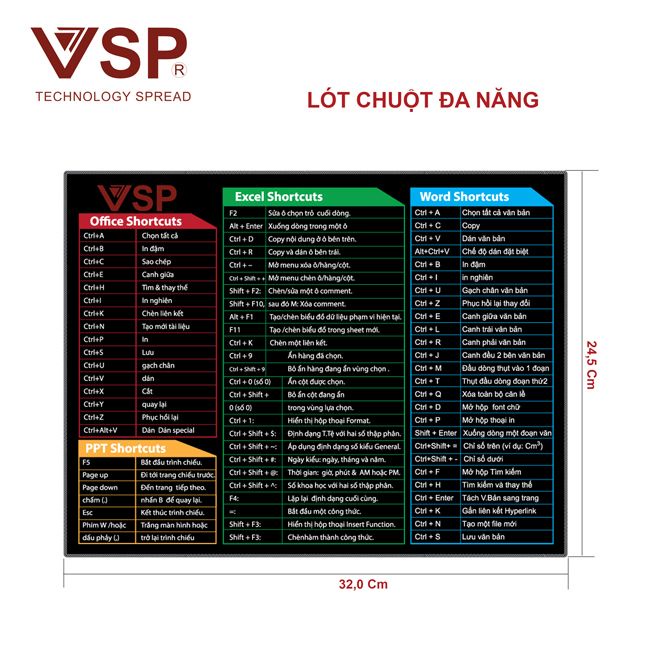 Miếng lót chuột đa nhiệm kích thước 32x24.5cmHình ảnh phím tắt của miếng lót chuột phần lớn có thể cải thiện hiệu quả công việc của bạn trong sử dụng văn phòng, Nó cũng thích hợp để chơi game.