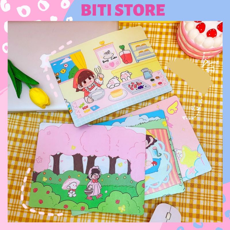 Miếng Lót Chuột Hình Chữ Nhật In Hình Cô Gái Hoạt Hình Dễ Thương BiTi LC305
