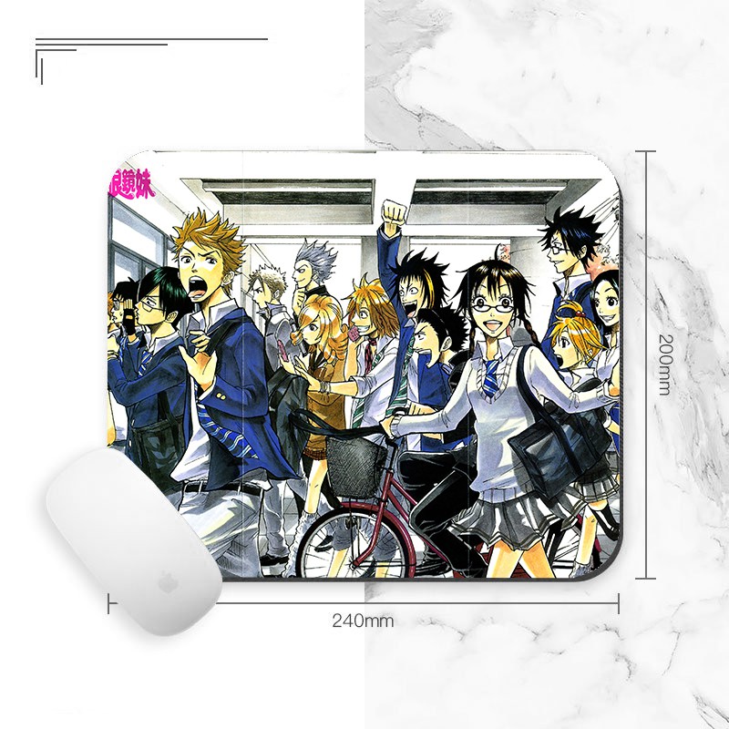 Miếng lót chuột IN HÌNH Yankee-kun To Megane-chan Đầu gấu và bốn mắt anime chibi tiện lợi xinh xắnKích thước: 20x24cm