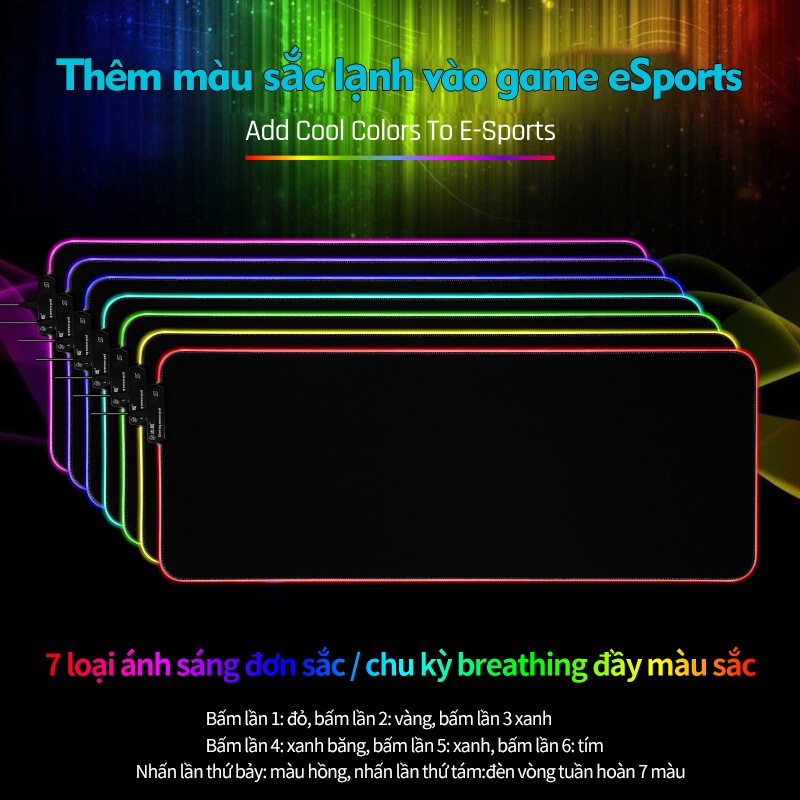 Miếng lót chuột LED RGB chống nước pad chuột chơi game cỡ lớn chống trượt siêu bền siêu đẹp