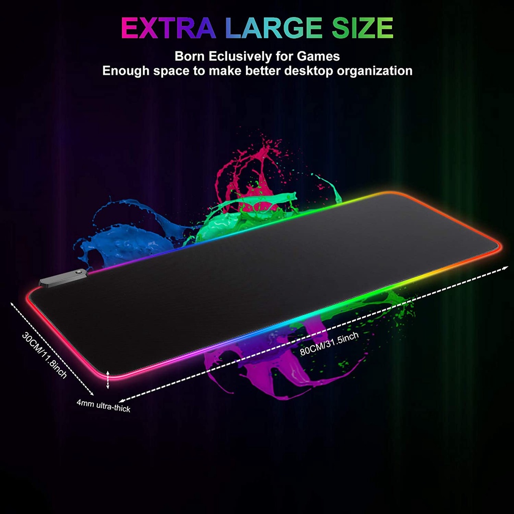 Miếng lót chuột led rgb 80x30 90x40, pad chuột cỡ lớn dày 4mm full box siêu ngầu bảo hành 1 đổi 1- Lót chuột LED RGB cỡ lớn