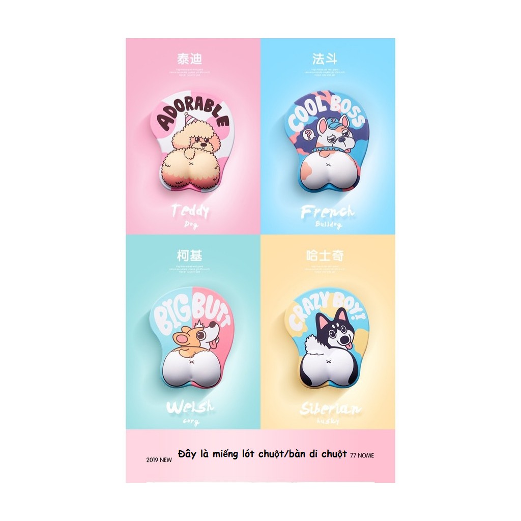 Miếng lót chuột máy tính, bàn di chuột silicon hình mông cún và thanh kê tay cùng bộ silicon 3D