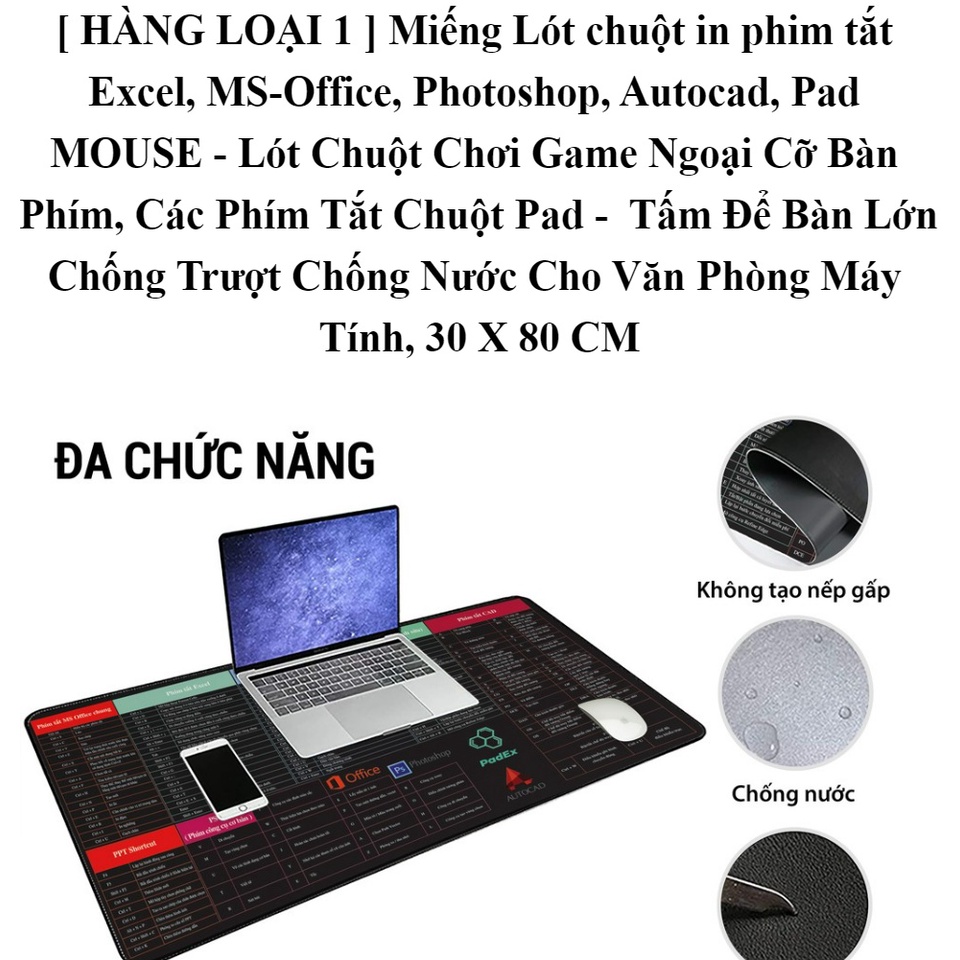 ❌❌❌❌MIẾNG LÓT CHUỘT PAD MOUSE KHỦNG 30 X 80 CM - CÓ PHÍM TẮT OFFICE , PHOTOSHOP-AUTOCAD (Tiếng Anh/Tiếng Việt) CHỐNG THẤM NƯỚC👉👉👉👉Chi Tiết Sản Phẩm: