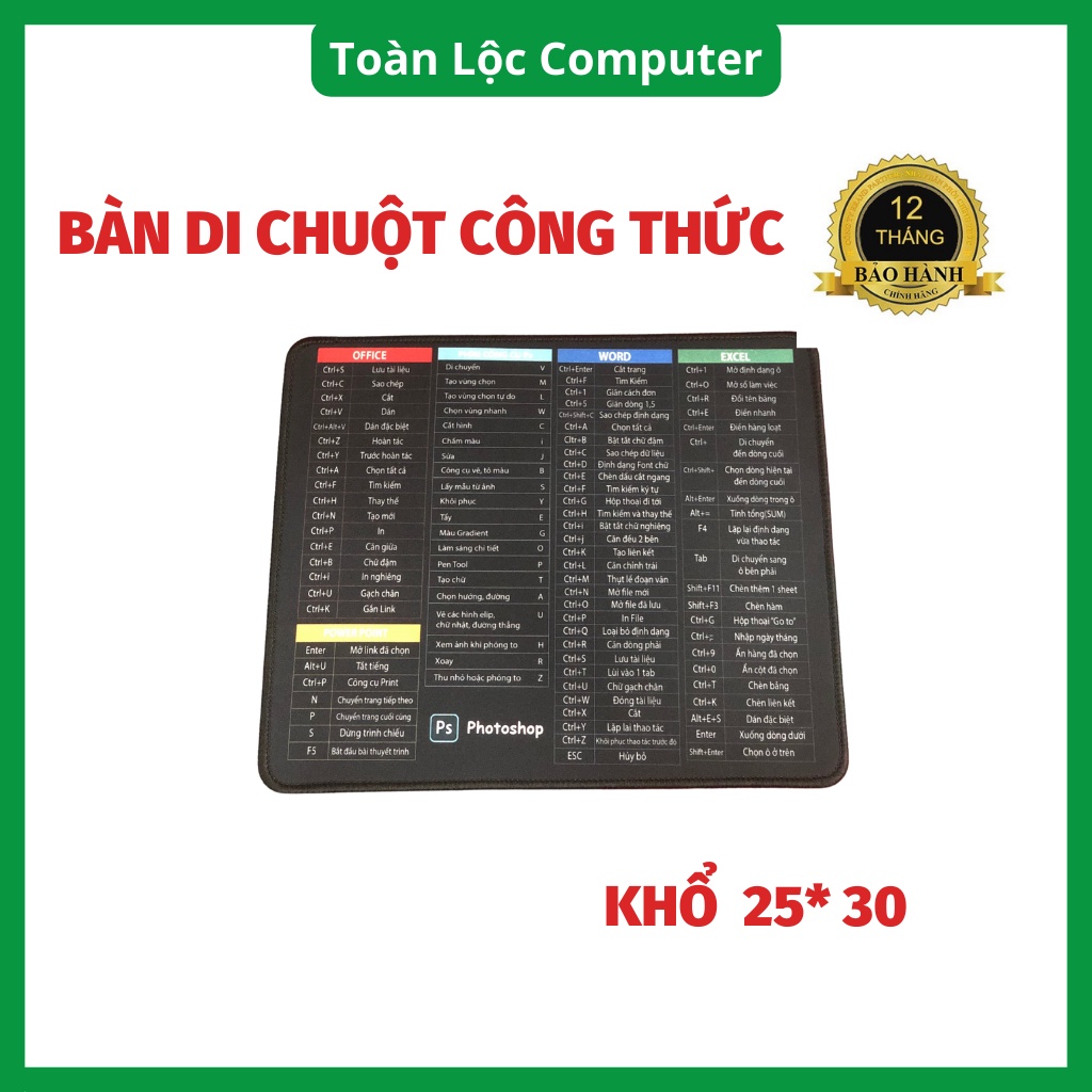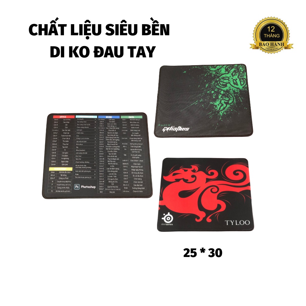 Miếng lót chuột tấm pad nhỏ 25x30cm có phím tắt máy tính gaming có đệm tayThông số Miếng lót chuột :
