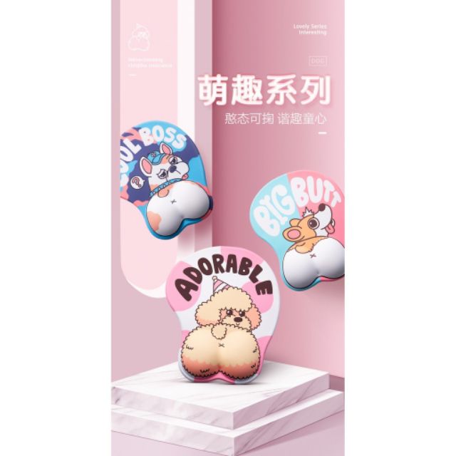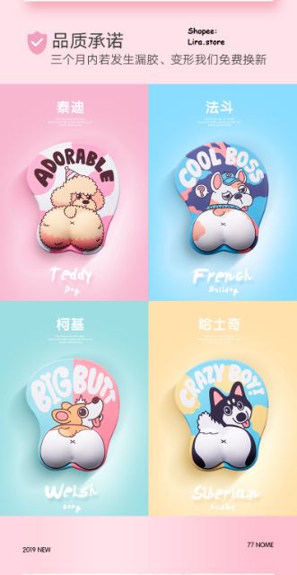 Miếng lót chuột silicon 3D hình dấu chân meo và mông cún SIÊU ĐÁNG YÊUKích thước miếng lót mông cún 26cm*21cm*2,5cm