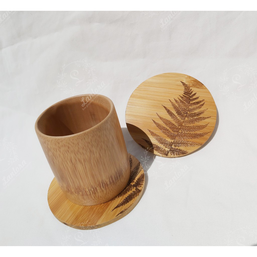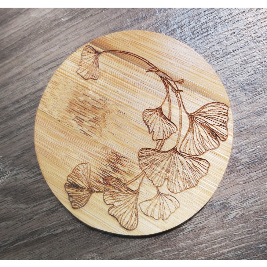 Miếng lót cốc, đế lót ly tròn họa tiết lá dương xỉ bằng gỗ tre ép 100%, bamboo coaster
