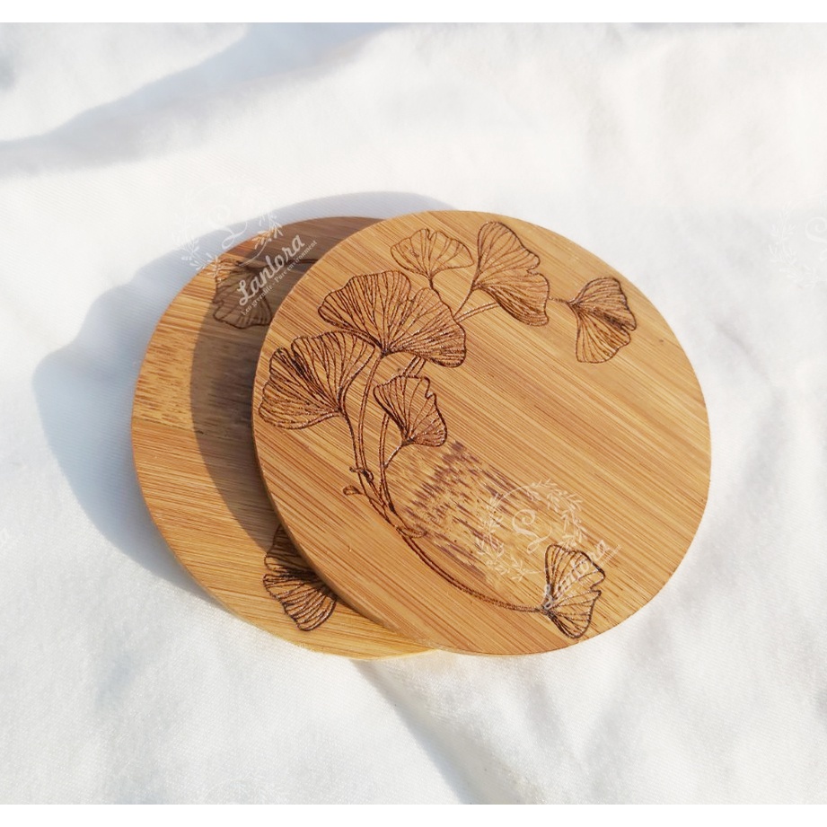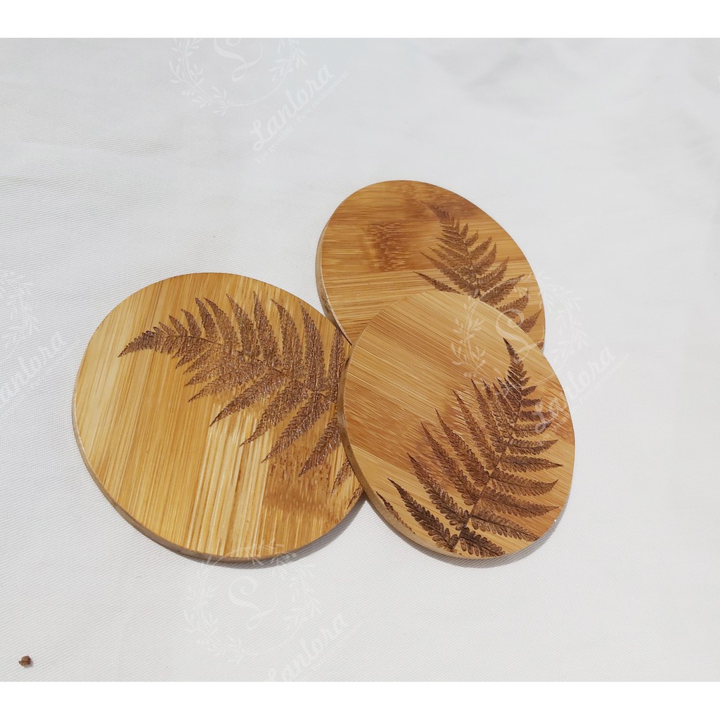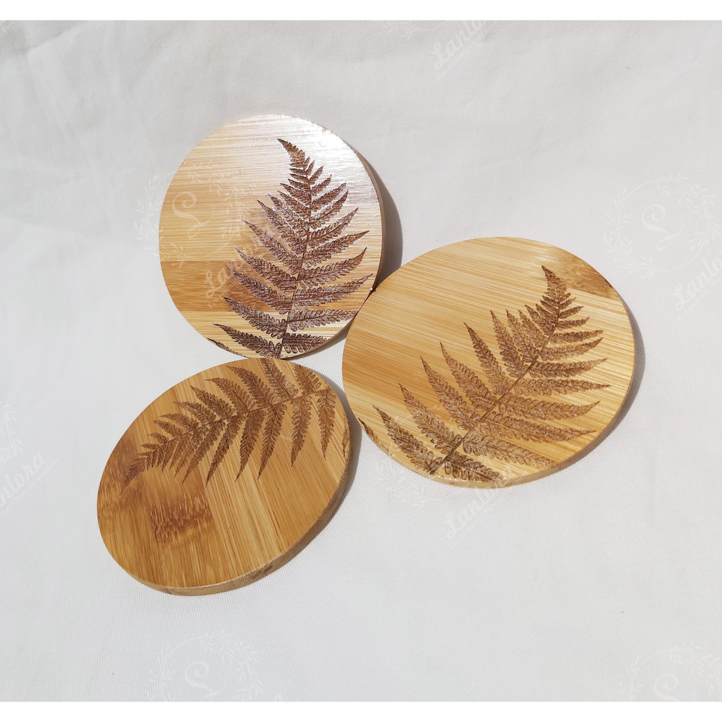 Nhà cửa & Đời sống > Bộ đồ bàn ăn > Khay, tấm lót bàn ăn || Miếng lót cốc, đế lót ly tròn họa tiết lá dương xỉ bằng gỗ tre ép 100%, bamboo coasterCòn hàng