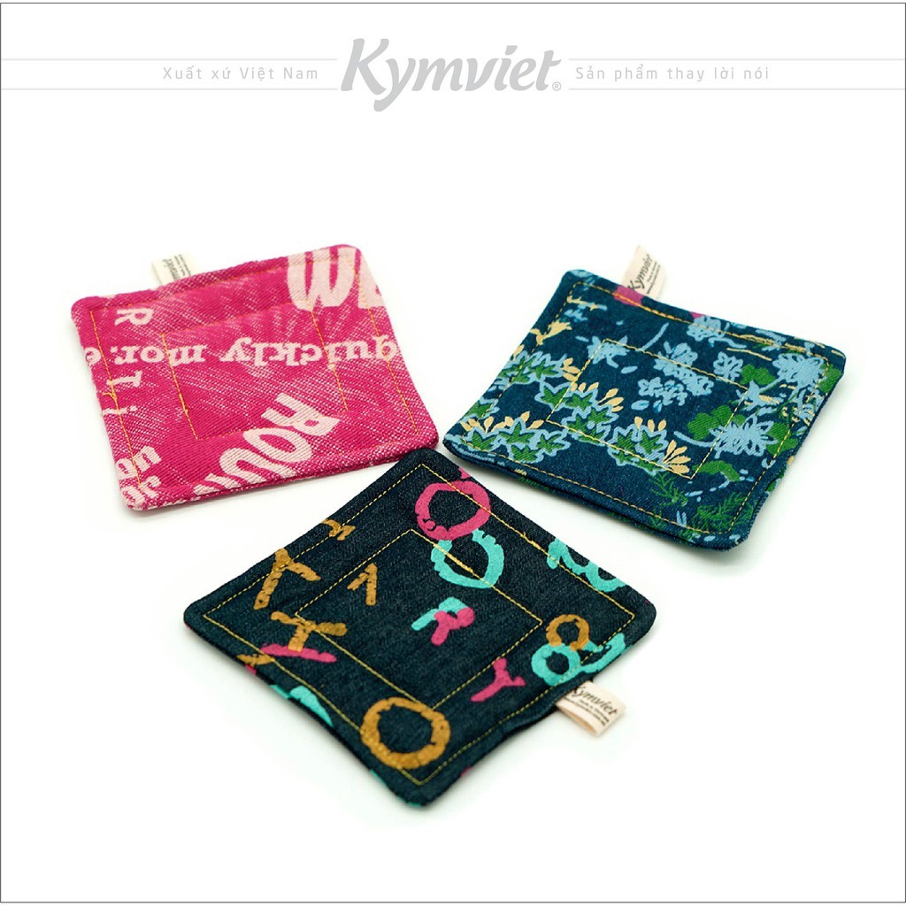 Miếng Lót Cốc, Lót Ly KYMVIET Chất Liệu Vải Bò In Họa Tiết 100% Handmade, Thấm Hút Tốt