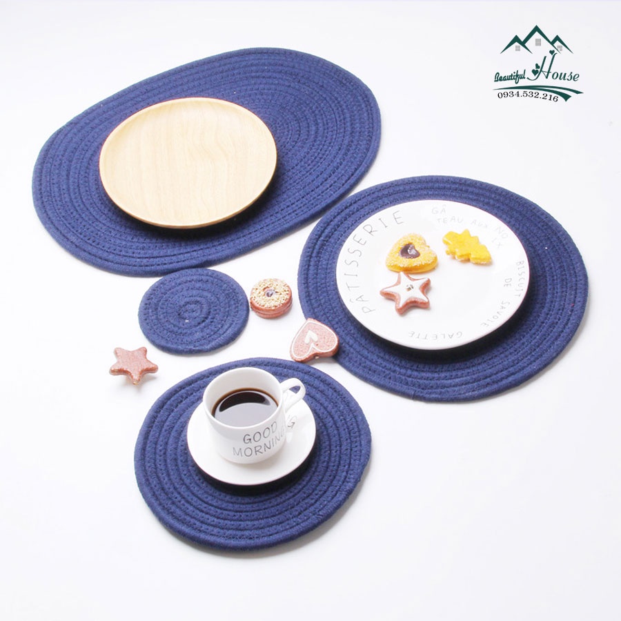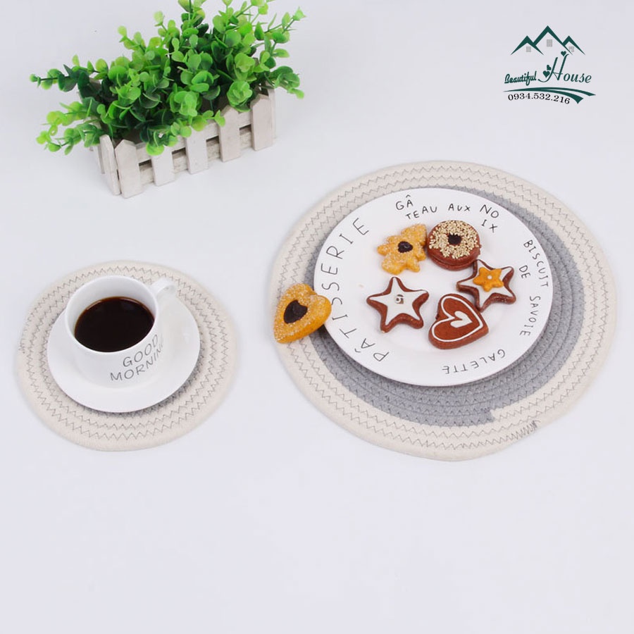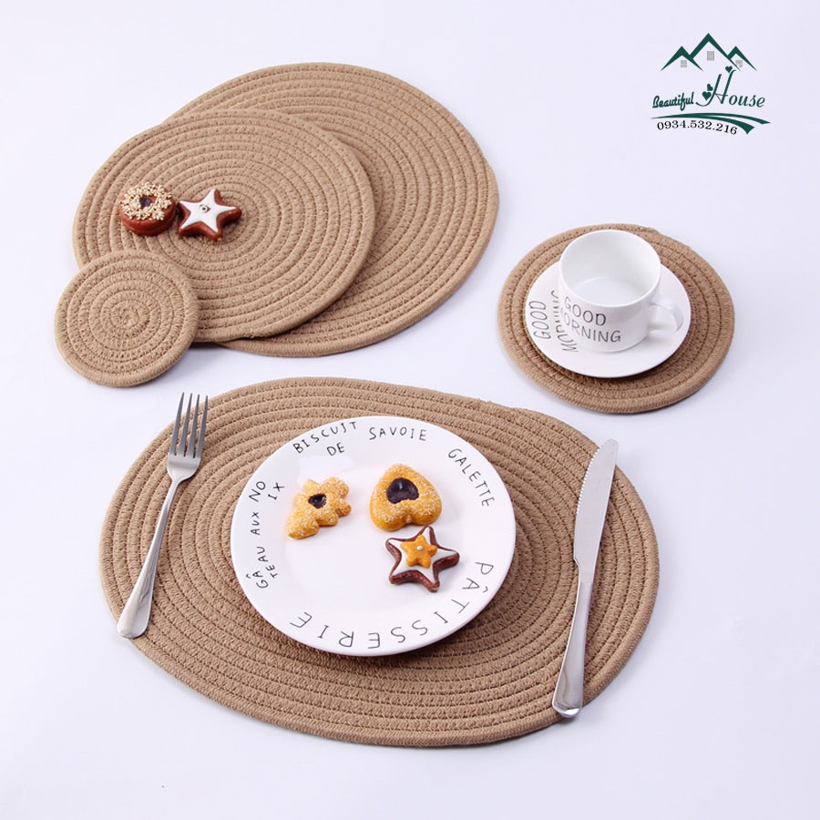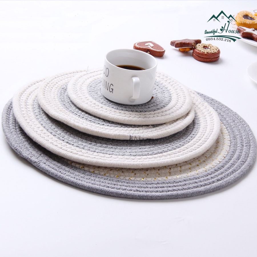 Miếng Lót Cốc, Lót Ly, Lót Đĩa, Lót Nồi chất Liệu Cotton - Tấm Lót Bàn Ăn Thấm Nước Bằng Vải Bện Xinh Xắn