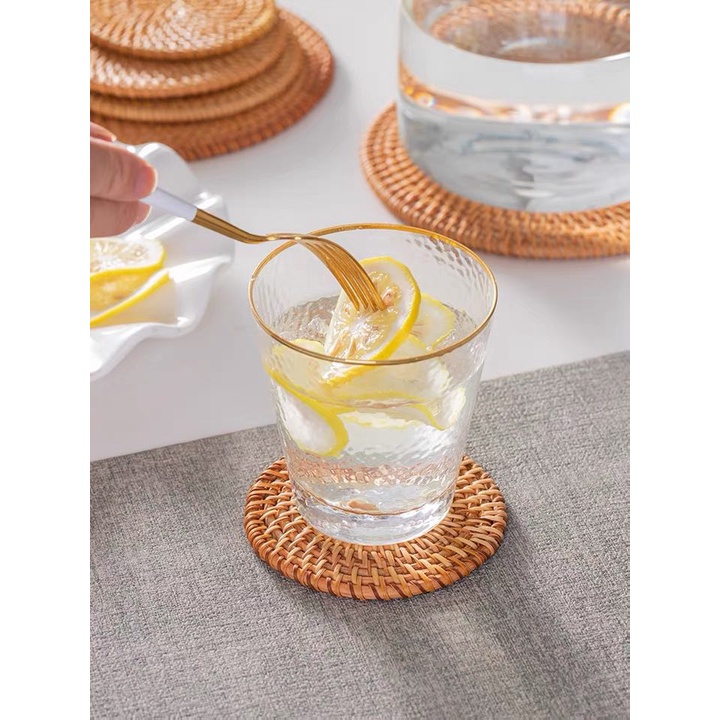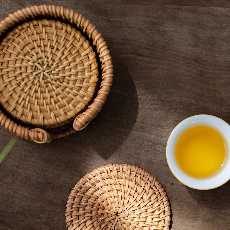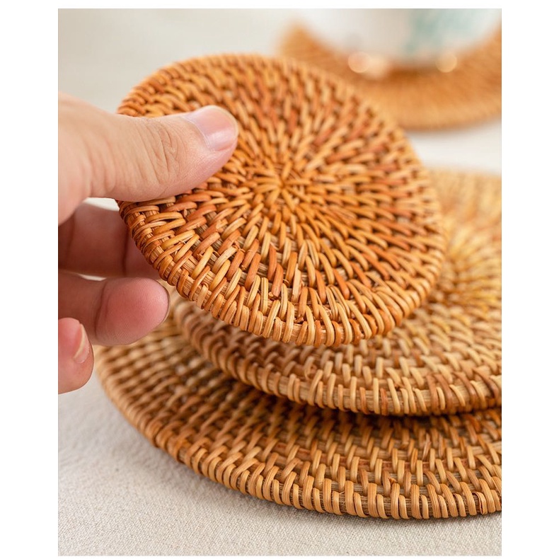 Miếng lót cốc lót ly lót nồi cách nhiệt bằng mây tre trang trí bàn ăn phòng bếp chụp ảnh food decor xinh xắn