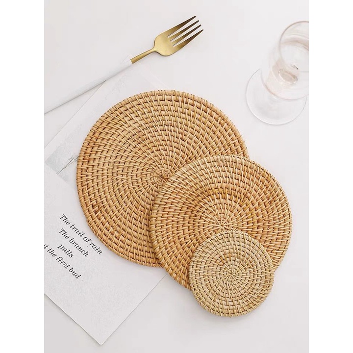 Nhà cửa & Đời sống > Bộ đồ bàn ăn > Khay, tấm lót bàn ăn || Miếng lót cốc lót ly lót nồi cách nhiệt bằng mây tre trang trí bàn ăn phòng bếp chụp ảnh food decor xinh xắnCòn hàng