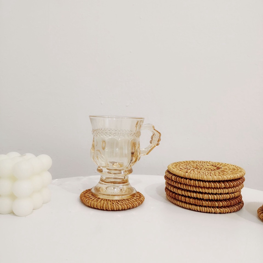 Miếng lót cốc lót ly lót nồi cách nhiệt bằng mây tre trang trí bàn ăn phòng bếp chụp ảnh food decor xinh xắn