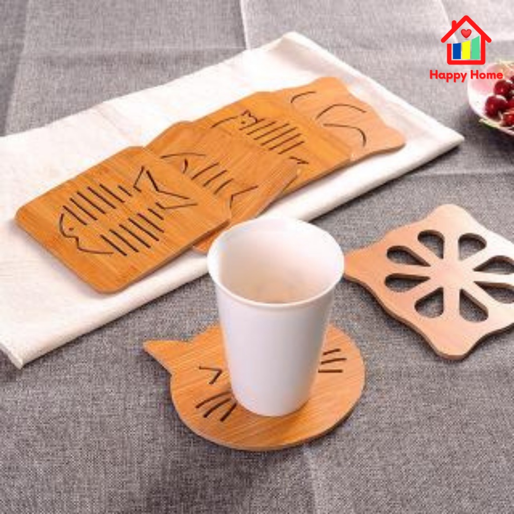 Miếng lót cốc, miếng lót nồi bằng gỗ dễ thương cách nhiệt tiện dụng Happy Home - Sản phẩm thiết yếu cho mọi gia đình