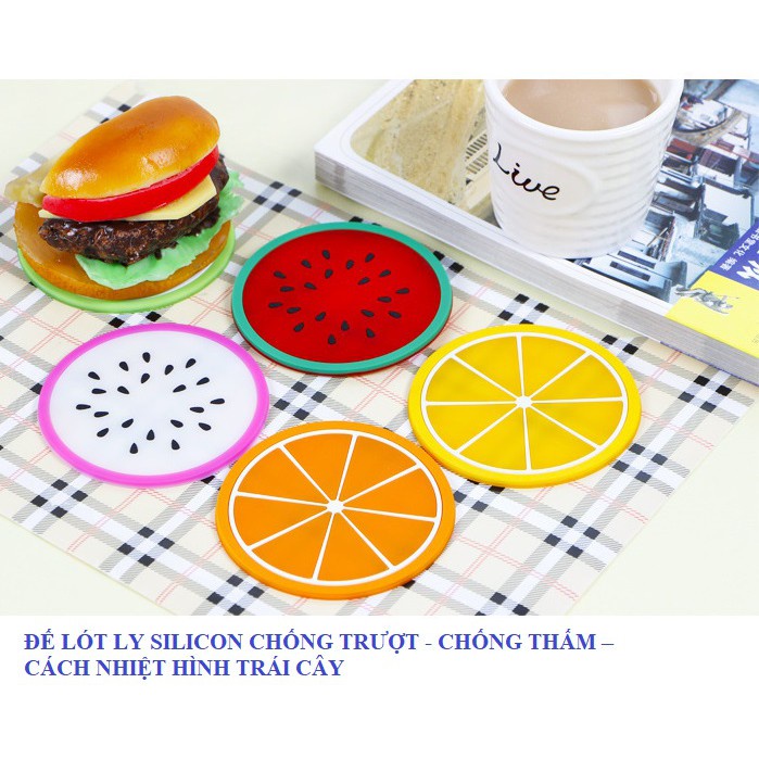 Nhà cửa & Đời sống > Bộ đồ bàn ăn > Khay, tấm lót bàn ăn || Miếng lót cốc silicon hình hoa quả tươi mát (9cm)Còn hàng