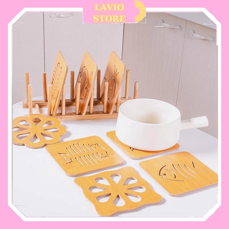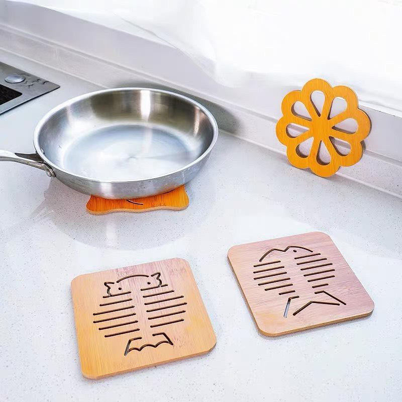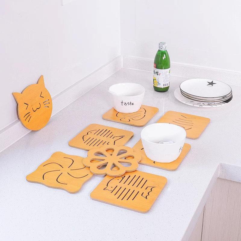 1. Sản phẩm dùng để lót xoong, nồi, chảo, bát đĩa, cốc chén … được làm bằng gỗ giúp cách nhiệt giữa xoong, nồi và mặt bàn hay tủ đựng thức ăn hiệu quả.