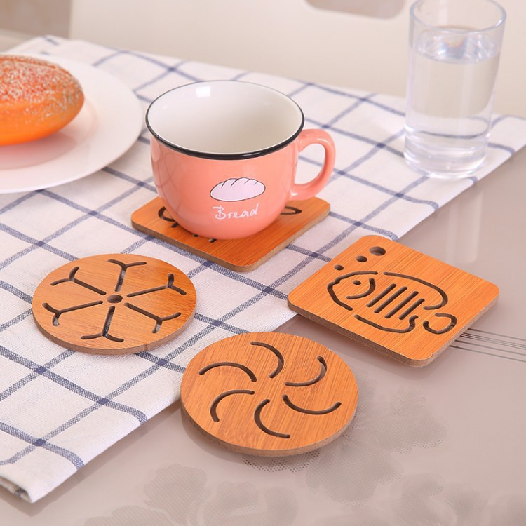 Lót ly bằng gỗ đễ thương, miếng lót chống bỏng tiện dụng