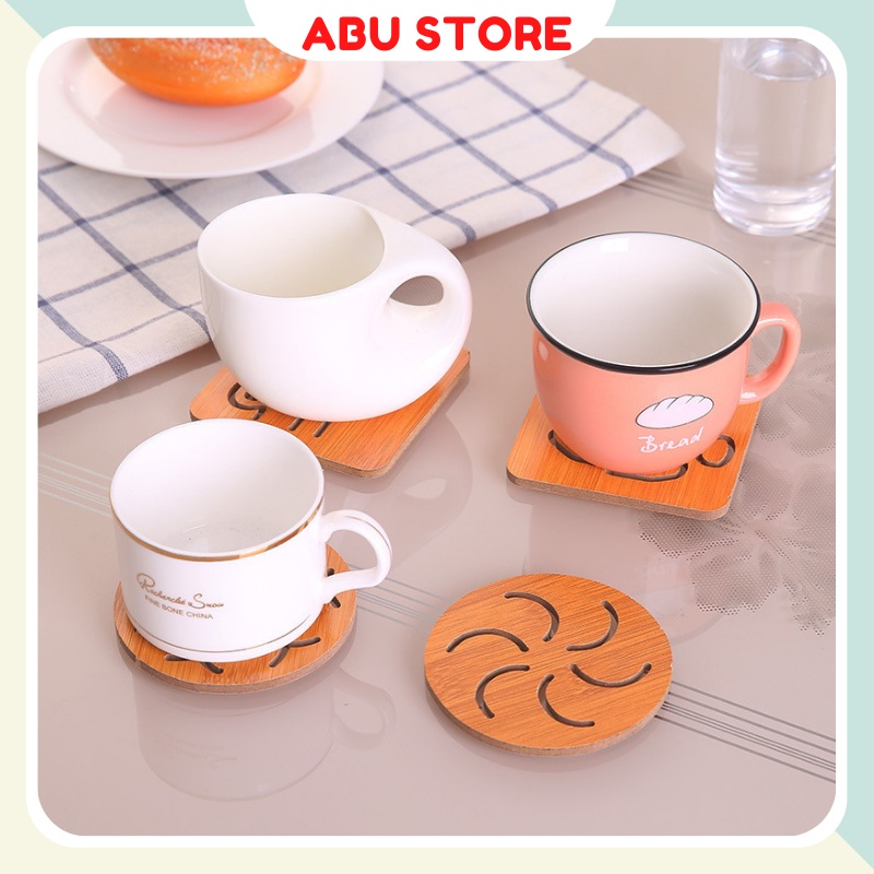 Giới thiệu Miếng lót gỗ Ly thủy tinh CUTE dễ thương ,Tấm lót bằng gỗ chống nóng tiện dụng ABUSSTORE
