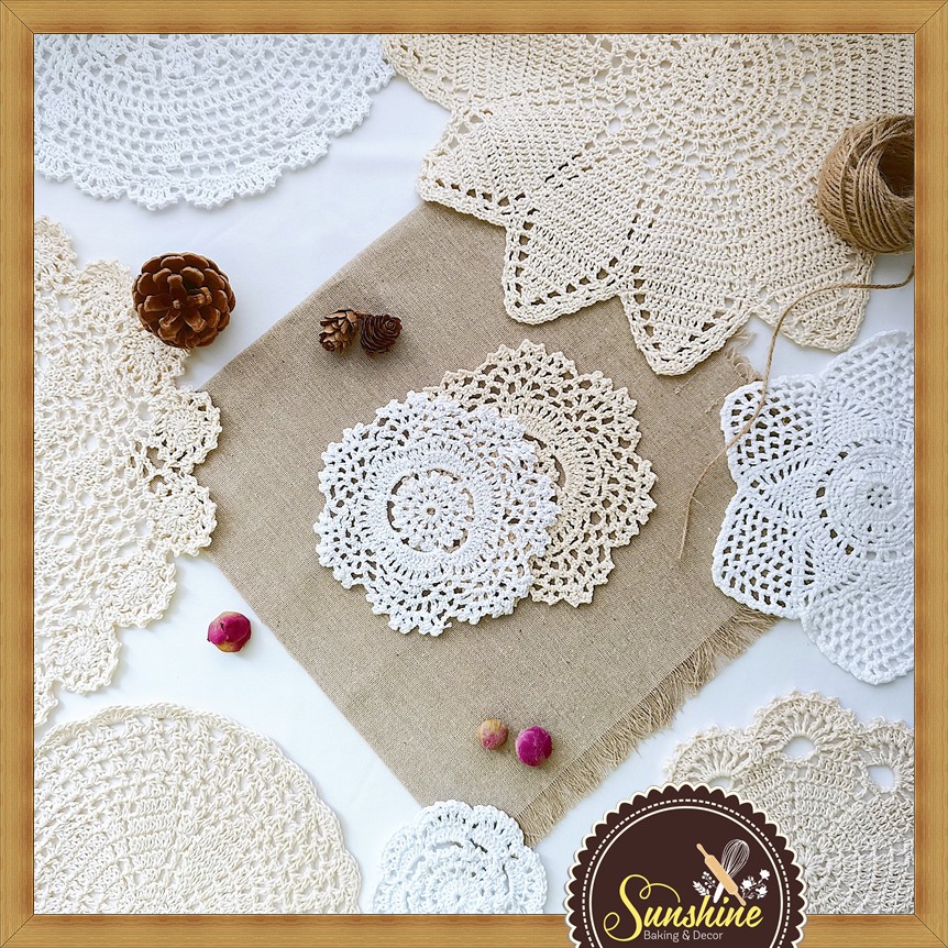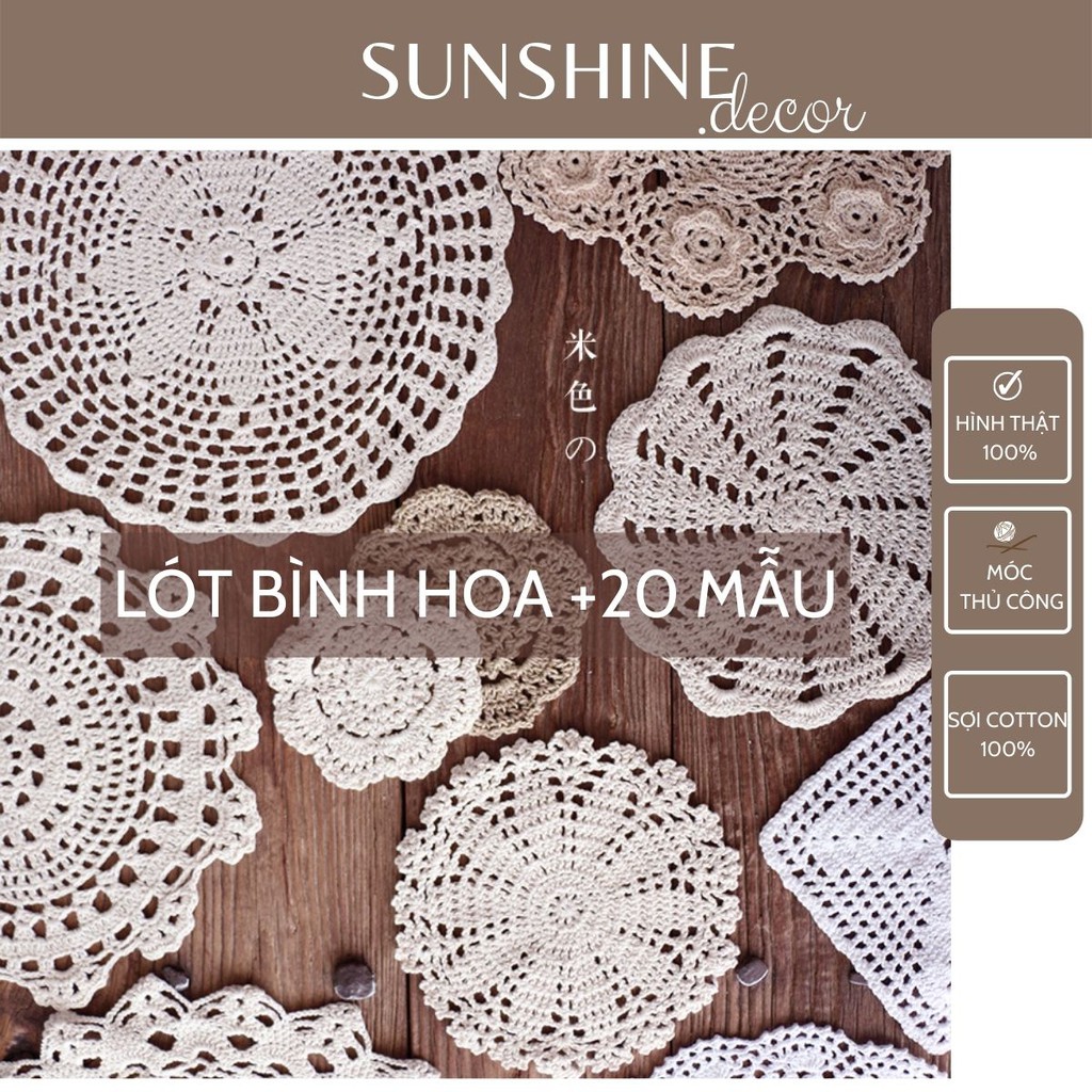 -Ngoài những công dụng để làm lót bình hoa, lọ hoa, lót ly, lót bàn ăn trên thì tấm lót bình hoa còn dùng như một phụ kiện chụp ảnh, bạn có thể dùng nó để chụp trang sức, phụ kiện, mỹ phẩm, quần áo, chụp bánh, chụp đồ ăn, chụp đồ uống đều rất đẹp. Nét đẹp mộc mạc, trang nhã của sợi bông ren cotton cũng rất phù hợp để bạn trang trí vỏ gối, may túi, làm đồ handmade, làm dreamcatcher, macrame ....