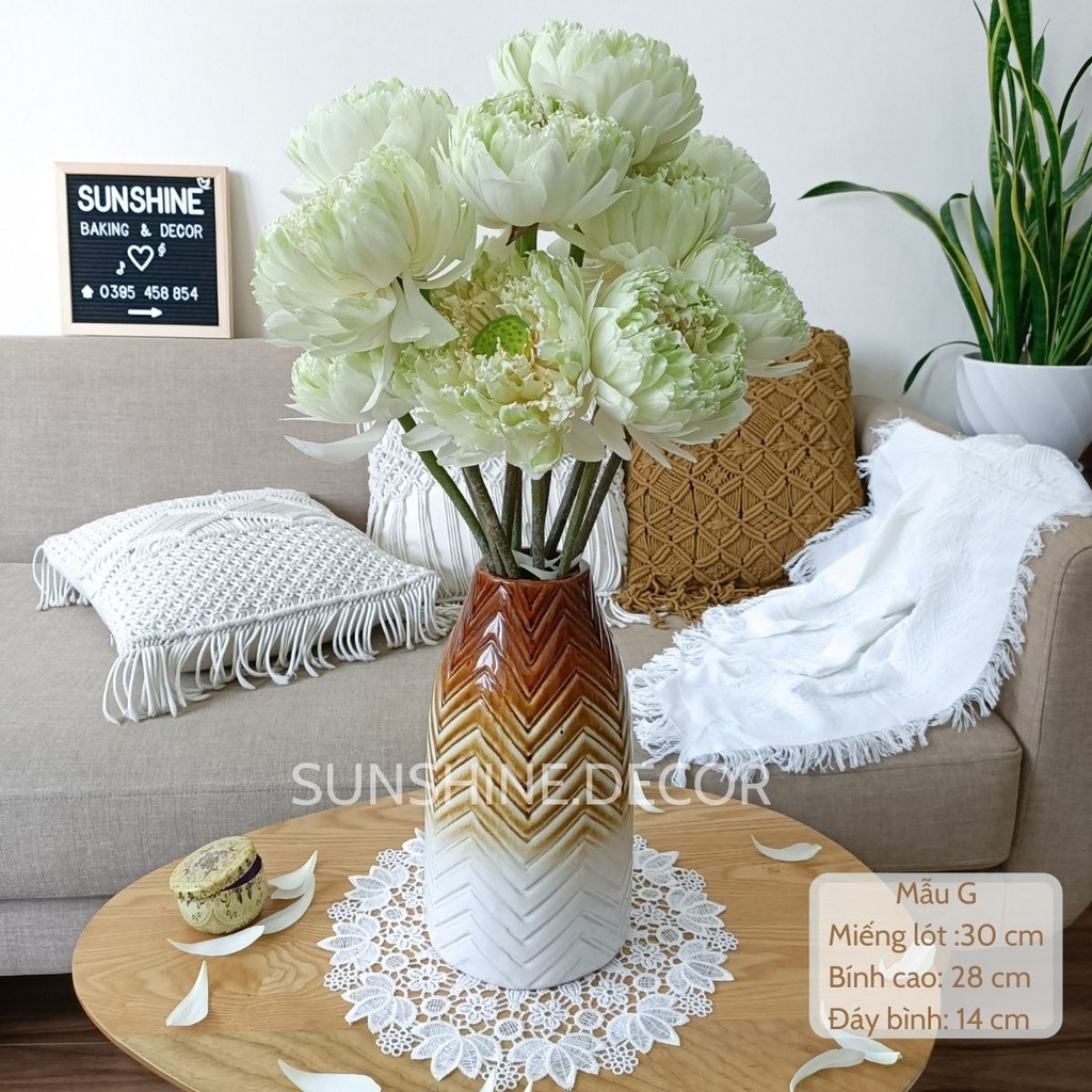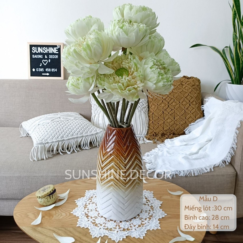 Tấm lót bình hoa rất mềm mại nên sau khi mua về bạn hãy dùng tay vuốt lại thì sản phẩm sẽ tròn đều ngay ạ.