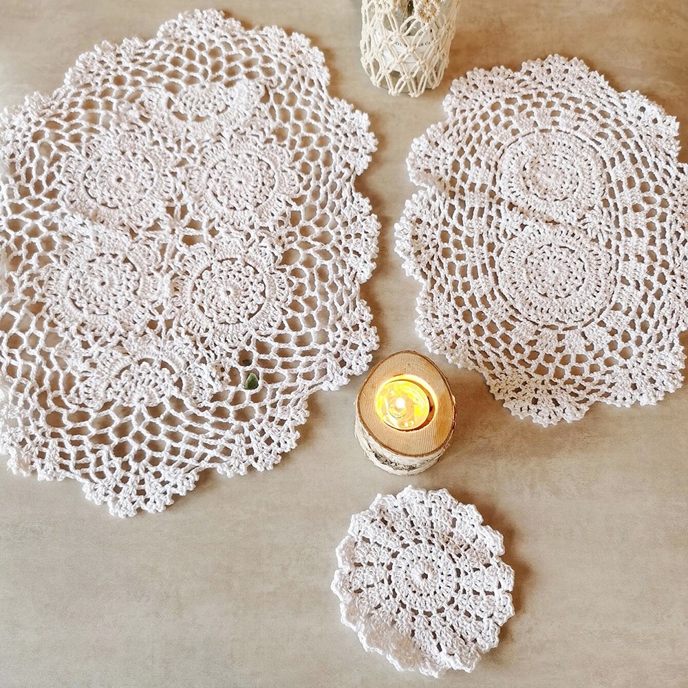 Nhà cửa & Đời sống > Bộ đồ bàn ăn > Khay, tấm lót bàn ăn || Miếng Lót Lọ Hoa Tấm Lót Ly Cốc Từ Len Đan Móc Phụ Kiện Trang Trí Vintage Phong Cách Retro | MAY DecorCòn hàng
