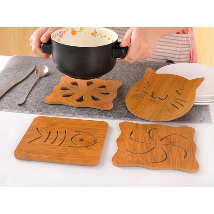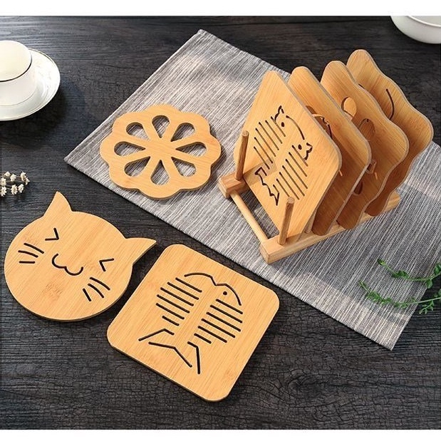 Nhà cửa & Đời sống > Bộ đồ bàn ăn > Khay, tấm lót bàn ăn || Miếng Lót Ly Bằng Gỗ Cách Nhiệt Có Nhiều Hình Dễ Thương Kích Thước 9,5x9,5cm Dùng Lót Cốc, Lót Xoong Nồi Tiện LợiCòn hàng