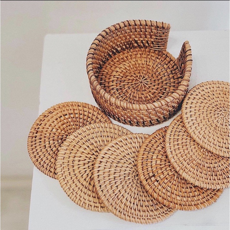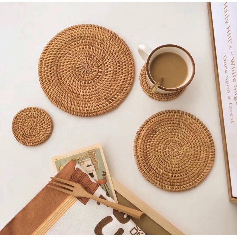Nhà cửa & Đời sống > Bộ đồ bàn ăn > Khay, tấm lót bàn ăn || Miếng lót ly cốc bằng guột phụ kiện decor chụp ảnh(Tấm lót mây tre tròn trang trí bàn ăn) HANHDECORCòn hàng
