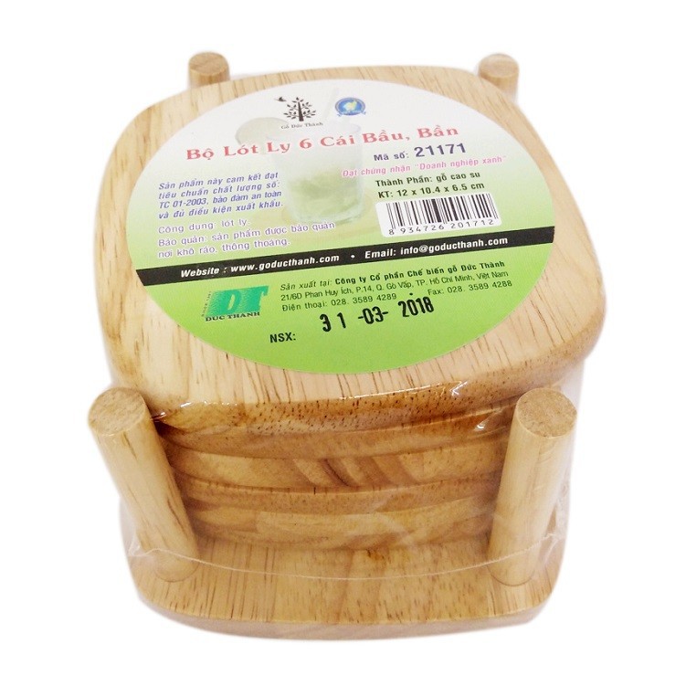 - Được làm từ gỗ cao su, bề mặt miếng lót được thiết kế các đường vân nổi để tạo ma sát với đế ly.