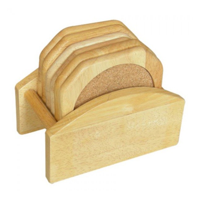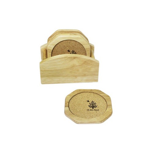 - Được làm từ gỗ cao su, bề mặt miếng lót được thiết kế các đường vân nổi để tạo ma sát với đế ly.