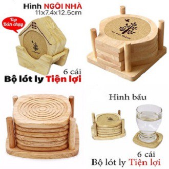 Bộ 6 cái có kích thước 12 x 10.4 x 6.5 cm tặng kèm khung đựng miếng lót ly như hình.