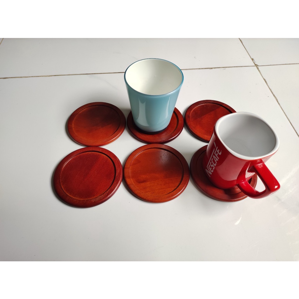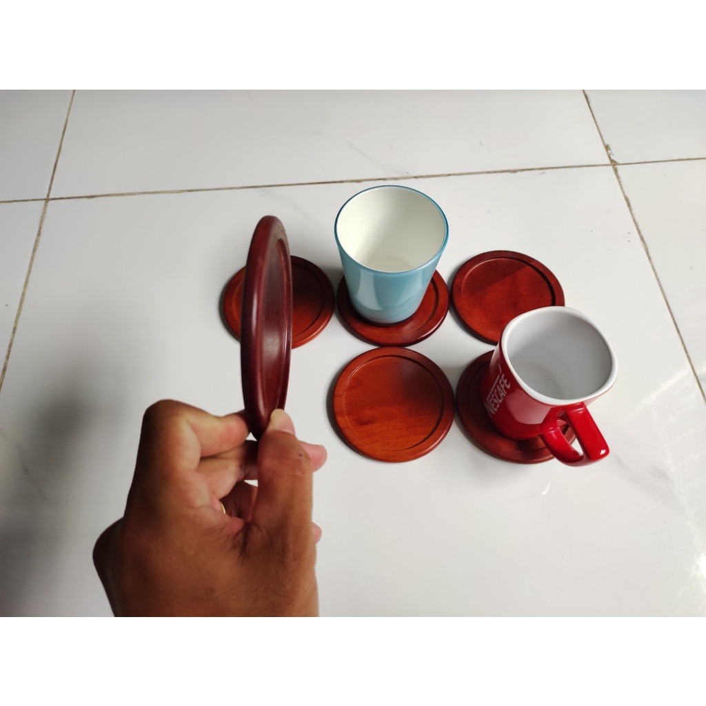 - Được làm từ gỗ cao su, bề mặt miếng lót được thiết kế các đường vân nổi để tạo ma sát với đế ly.