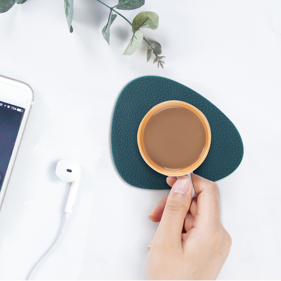 Miếng Lót Ly Cốc hình tam giác bằng silicon giả da