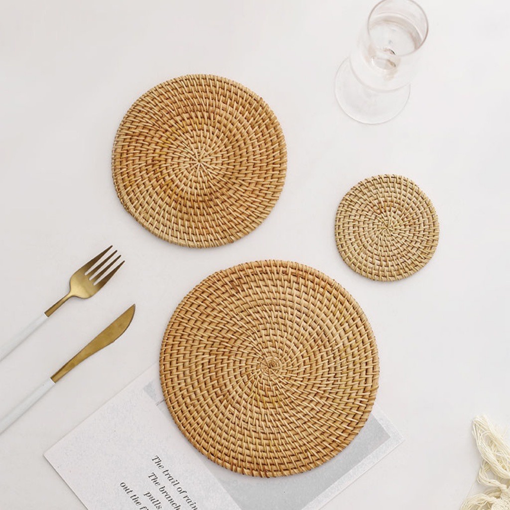 Nhà cửa & Đời sống > Bộ đồ bàn ăn > Khay, tấm lót bàn ăn || Miếng lót ly cốc lót bàn ăn chất liệu mây tre đan trang trí nhà cửa, phụ kiện decor chụp ảnhCòn hàng