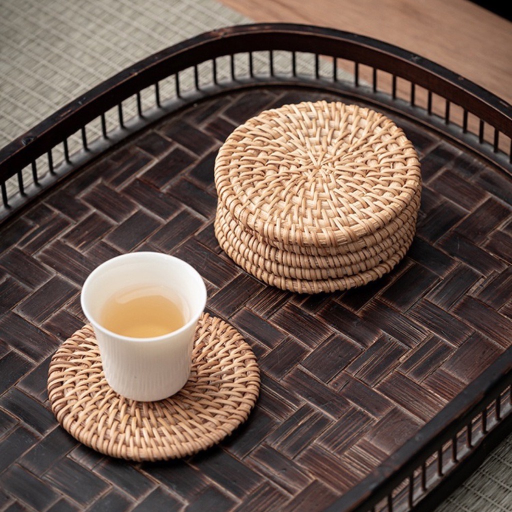 Miếng lót ly cốc lót bàn ăn chất liệu mây tre đan trang trí nhà cửa, phụ kiện decor chụp ảnh
