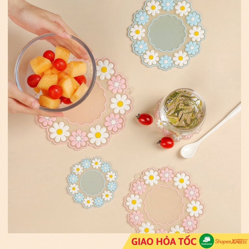 Nhà cửa & Đời sống > Bộ đồ bàn ăn > Khay, tấm lót bàn ăn || Miếng lót ly cốc/lót nồi bằng silicon cách nhiệt, chống thấm nước, chống trượt hình hoa cúc dễ thươngCòn hàng