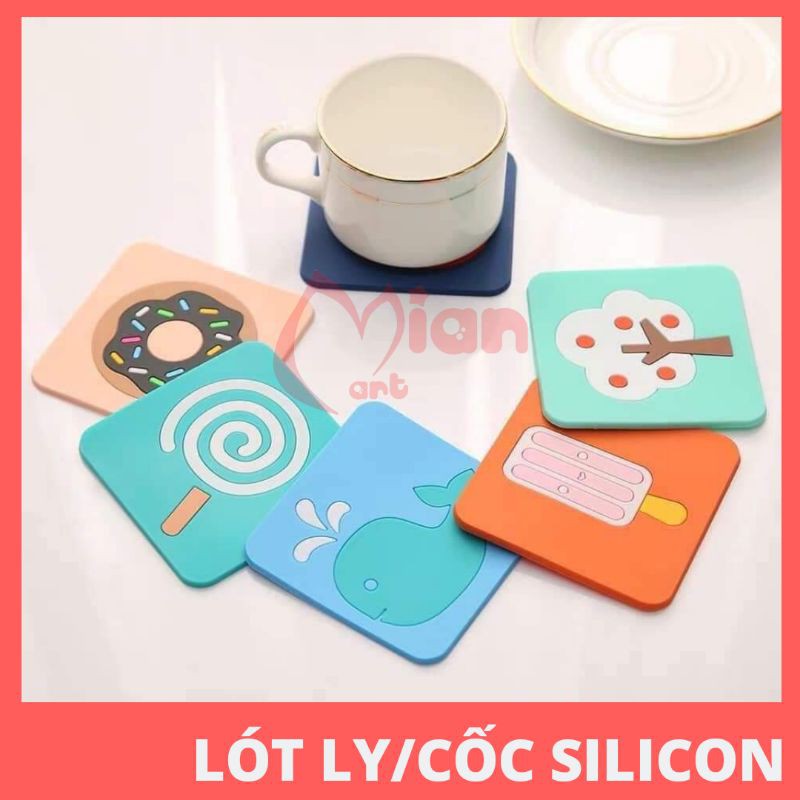 Miếng lót ly/cốc nhựa silicon hoạ tiết ngộ nghĩnh - Mian mart