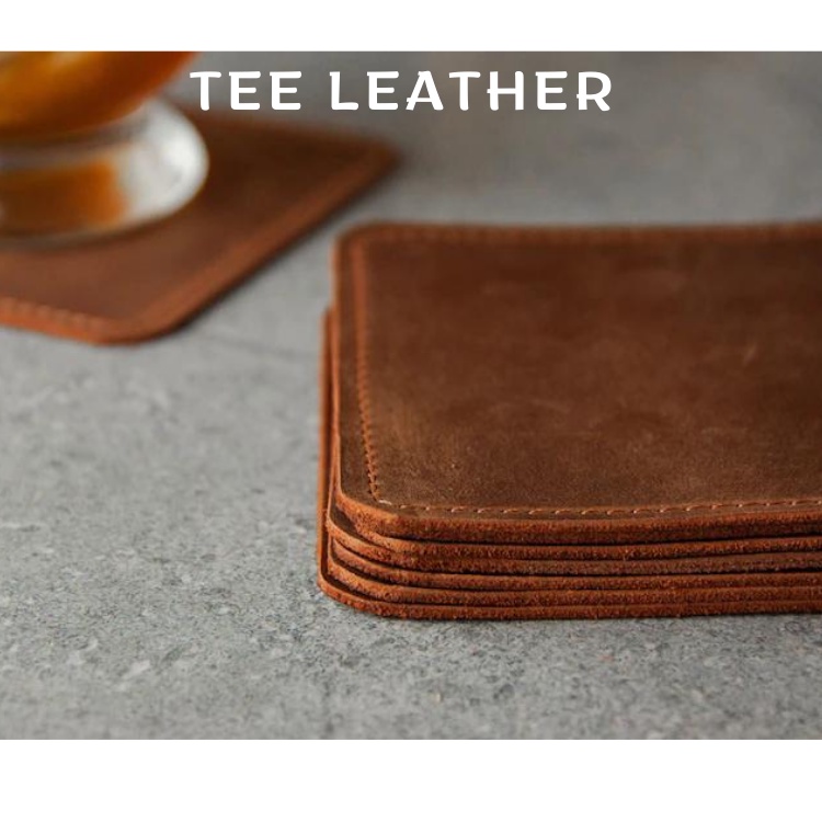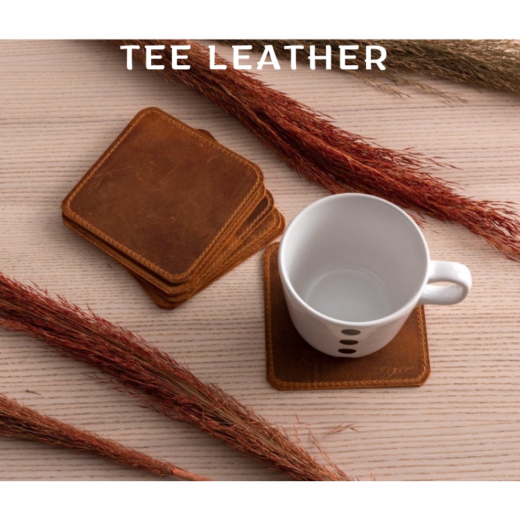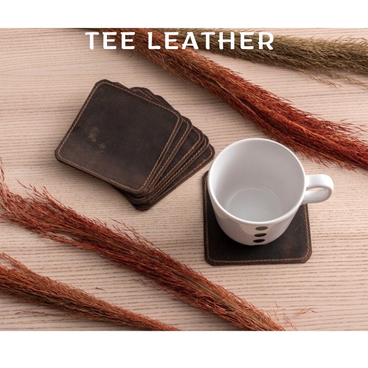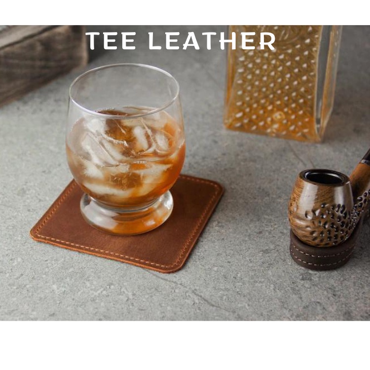 Miếng lót ly, đế lót cốc làm bằng DA THẬT, chống trơn cách nhiệt - TEE LEATHER