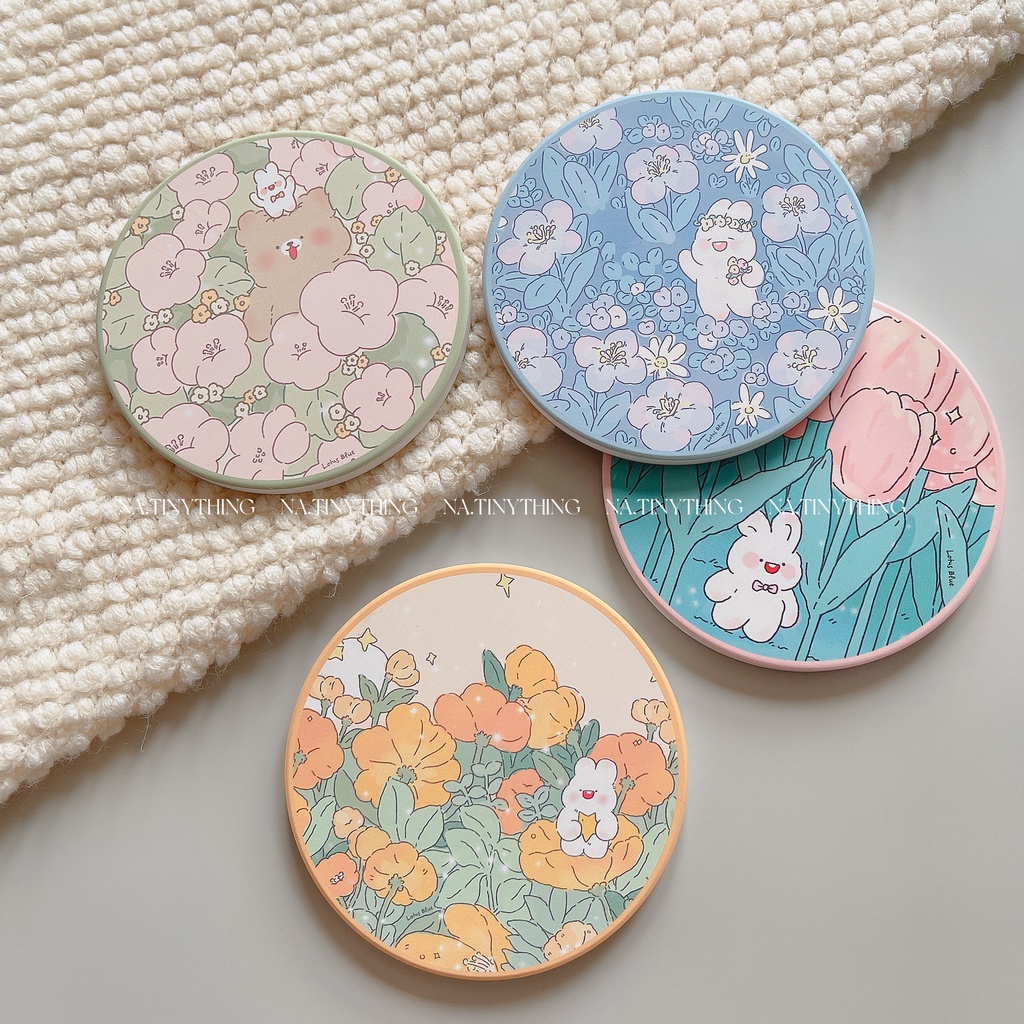 Miếng lót ly, đế lót cốc làm bằng đá thấm hút nước hoạ tiết hoạt hình dễ thương phong cách Hàn Quốc NA0063