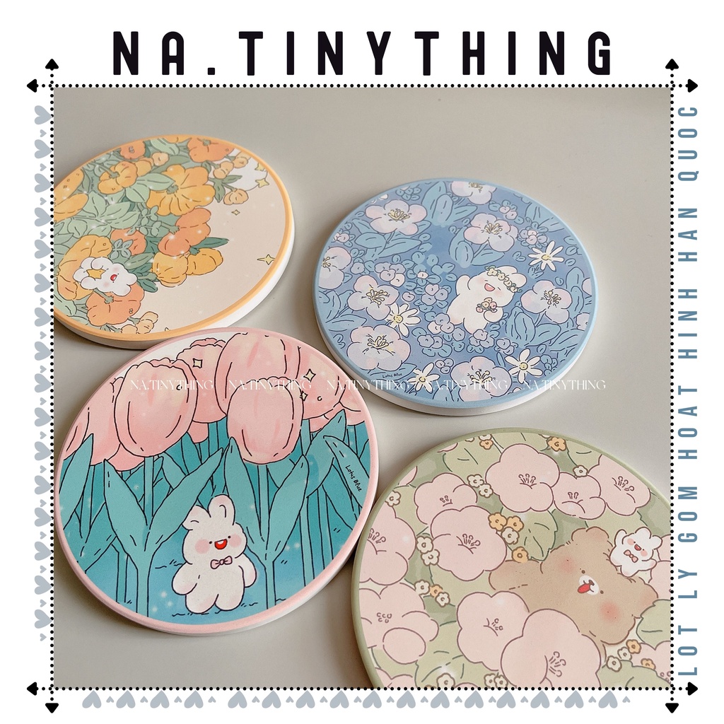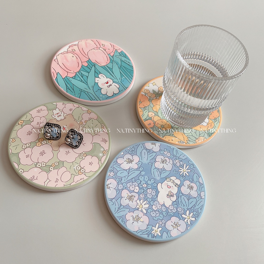 Nhà cửa & Đời sống > Bộ đồ bàn ăn > Khay, tấm lót bàn ăn || Miếng lót ly, đế lót cốc làm bằng đá thấm hút nước hoạ tiết hoạt hình dễ thương phong cách Hàn Quốc NA0063Còn hàng