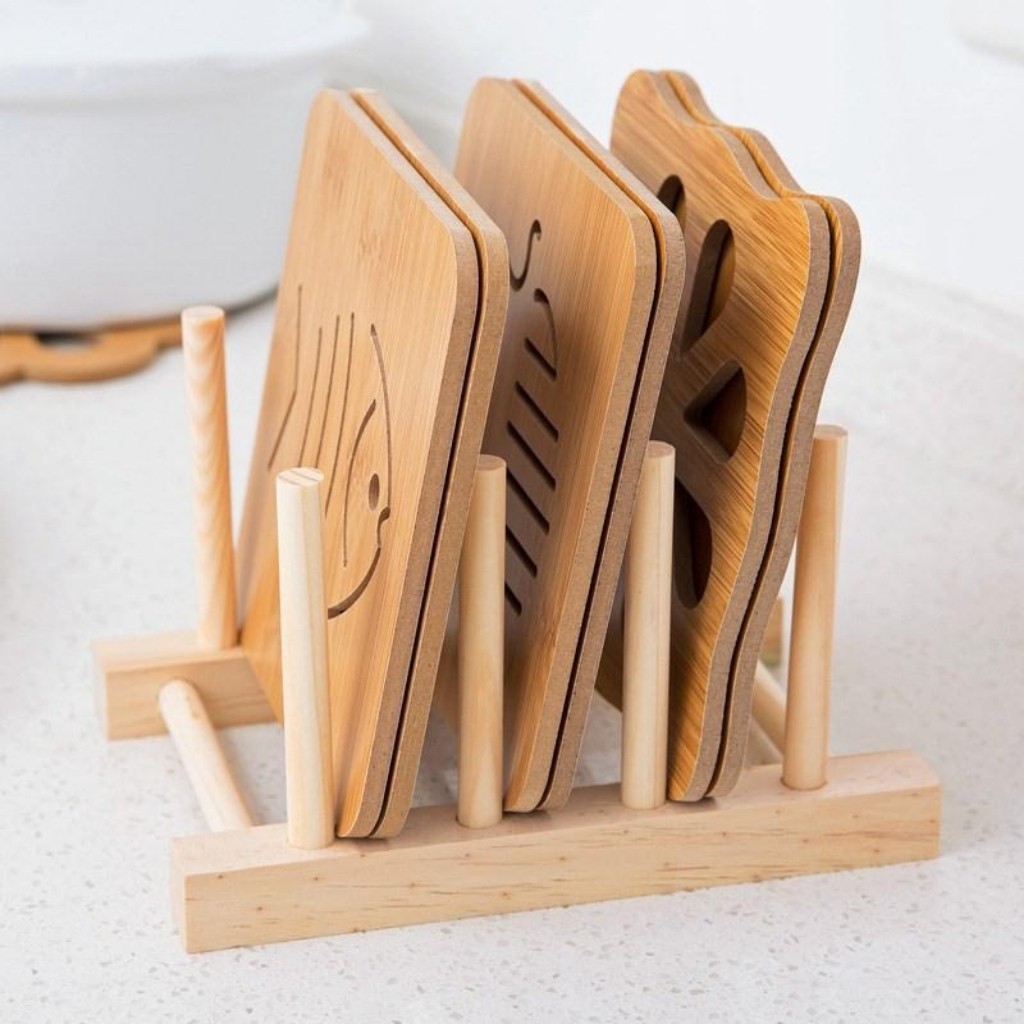 ✿ . Thiết kế bằng chất liệu ghỗ siêu dễ thương có chân đế chắc chắn chống trơn trượt, thân thiện với môi trường, có thể rửa được, không phai màu, bền, cách nhiệt.