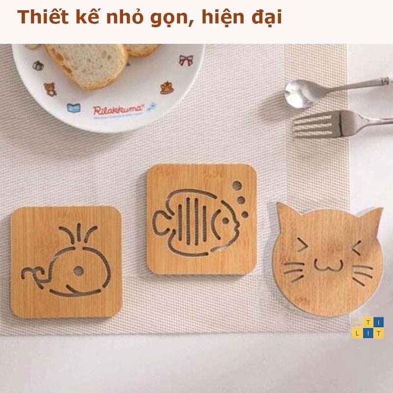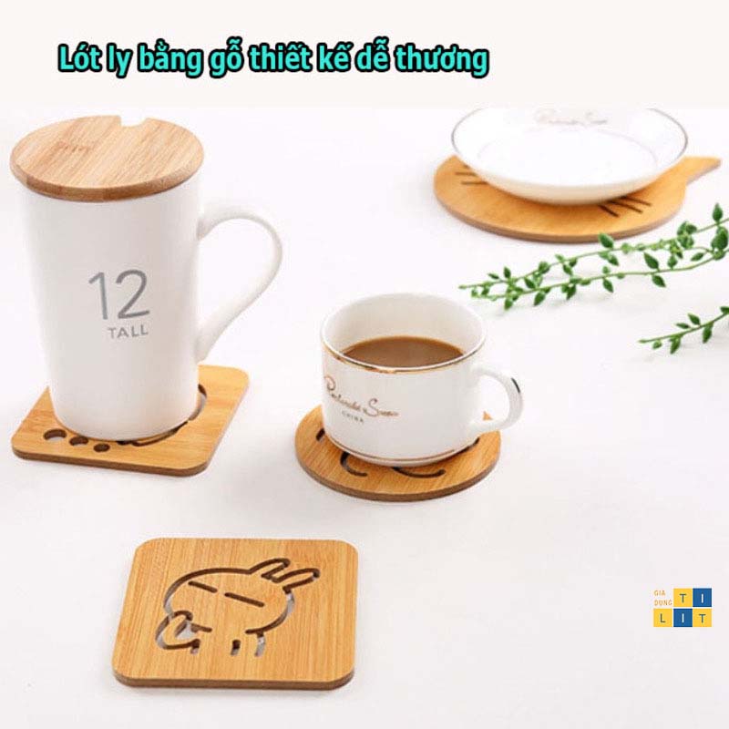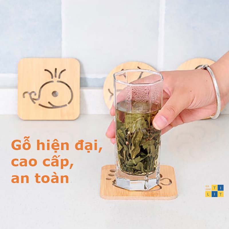 Nhà cửa & Đời sống > Bộ đồ bàn ăn > Khay, tấm lót bàn ăn || Miếng Lót Ly, Lót Cốc Chén Bằng Gỗ Hình Dễ Thương 9x9cm (LÓT LY GỖ)Còn hàng