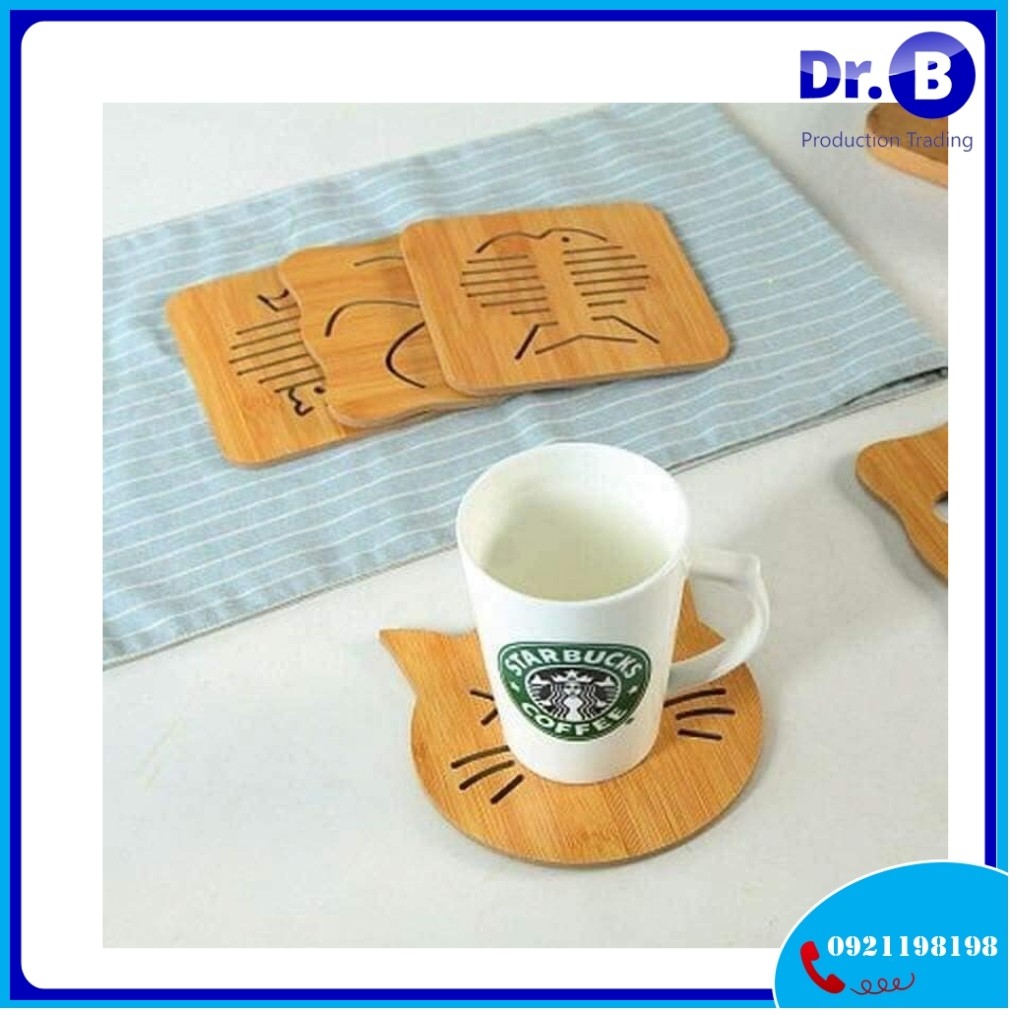 Giới thiệu Miếng Lót Ly, Lót Nồi, Lót Cốc Chén Bằng Gỗ Hình Dễ Thương Kích Thước 14*14cm