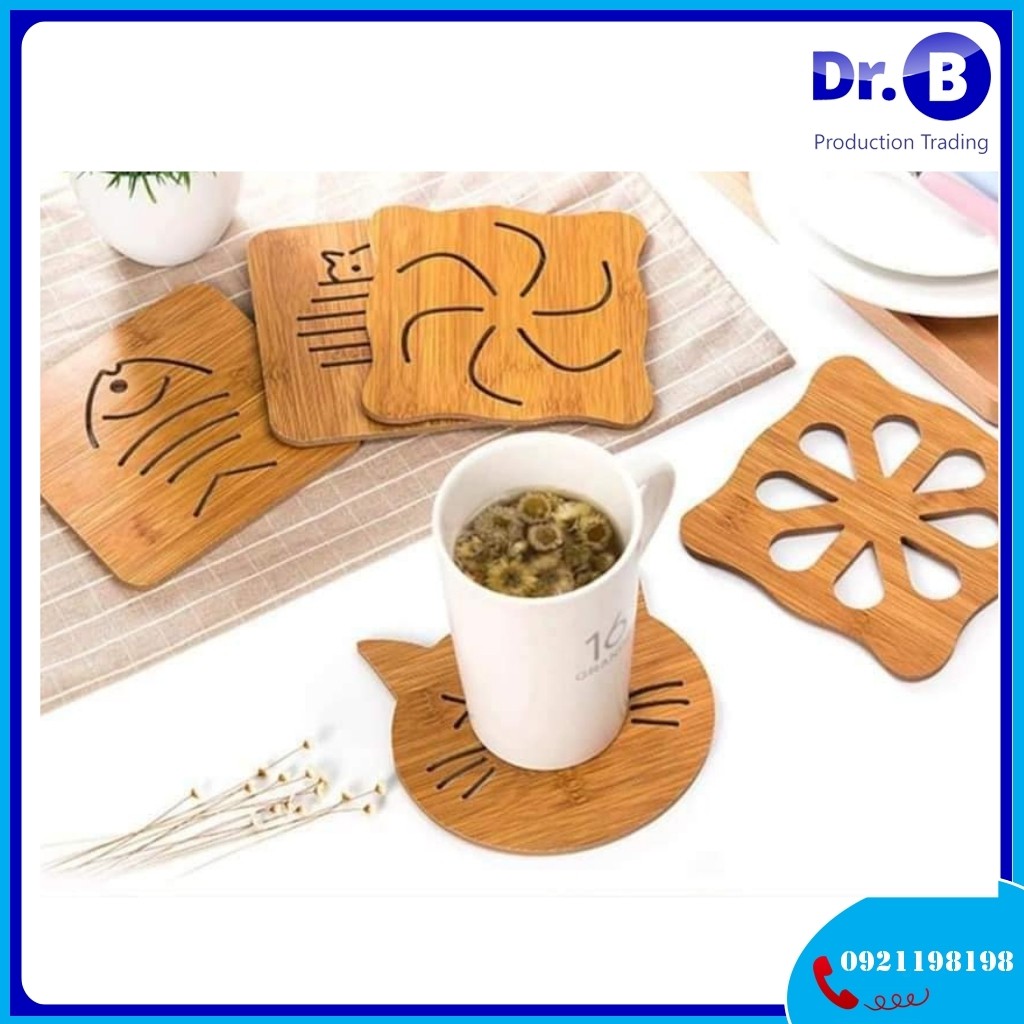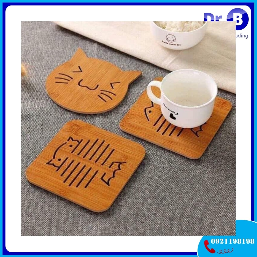 Nhà cửa & Đời sống > Bộ đồ bàn ăn > Khay, tấm lót bàn ăn || Miếng Lót Ly, Lót Nồi, Lót Cốc Chén Bằng Gỗ Hình Dễ Thương Kích Thước 14*14cmCòn hàng