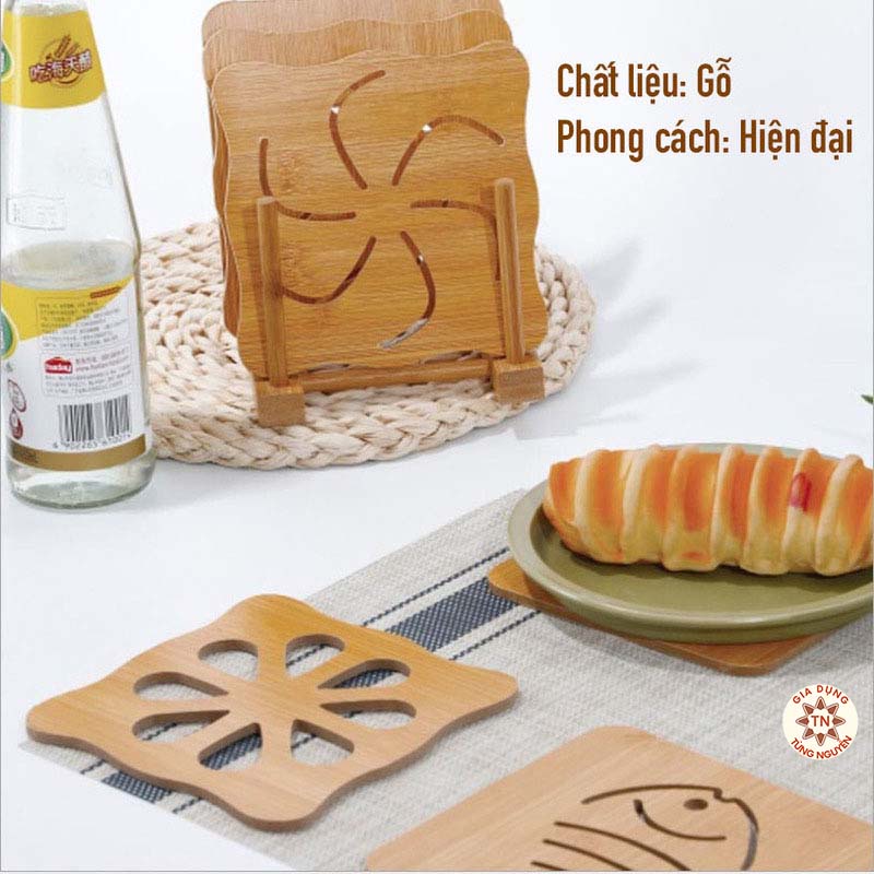 Nhà cửa & Đời sống > Bộ đồ bàn ăn > Khay, tấm lót bàn ăn || Miếng Lót Ly Nhỏ Cách Nhiệt Bằng Gỗ , Cốc, Chén Nhiều Hình Xinh Xắn size 9x9cm [LOT LY GO NHO]Còn hàng