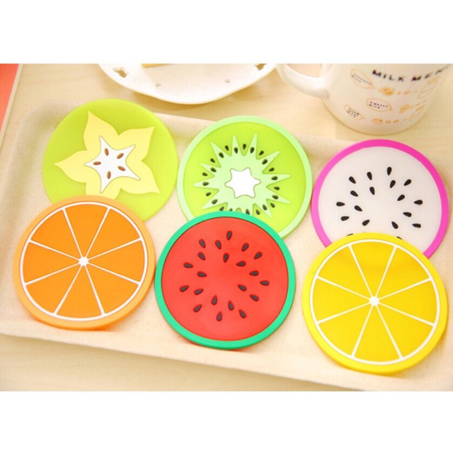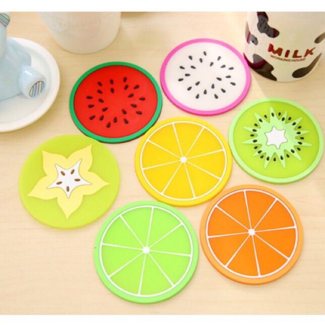 Miếng lót cốc silicon hình hoa quả tươi mátKích thước: đường kính 8cm, khối lượng 20g