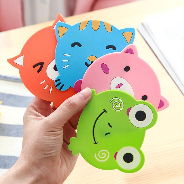 Miếng lót ly silicon nhiều hình chống thấm nước và cách nhiệt, đế lót ly hoạt hình cute, tấm lót ly nước nhiều màu