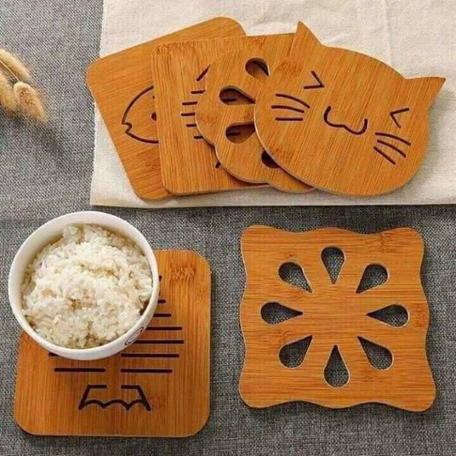 👉👉👉👉Miếng lót nồi, bát, cốc, chén bằng gỗ:- Đế lót nồi bằng gỗ được gia công hoàn toàn bằng chất liệu gỗ tre gọn nhẹ, cứng cáp.