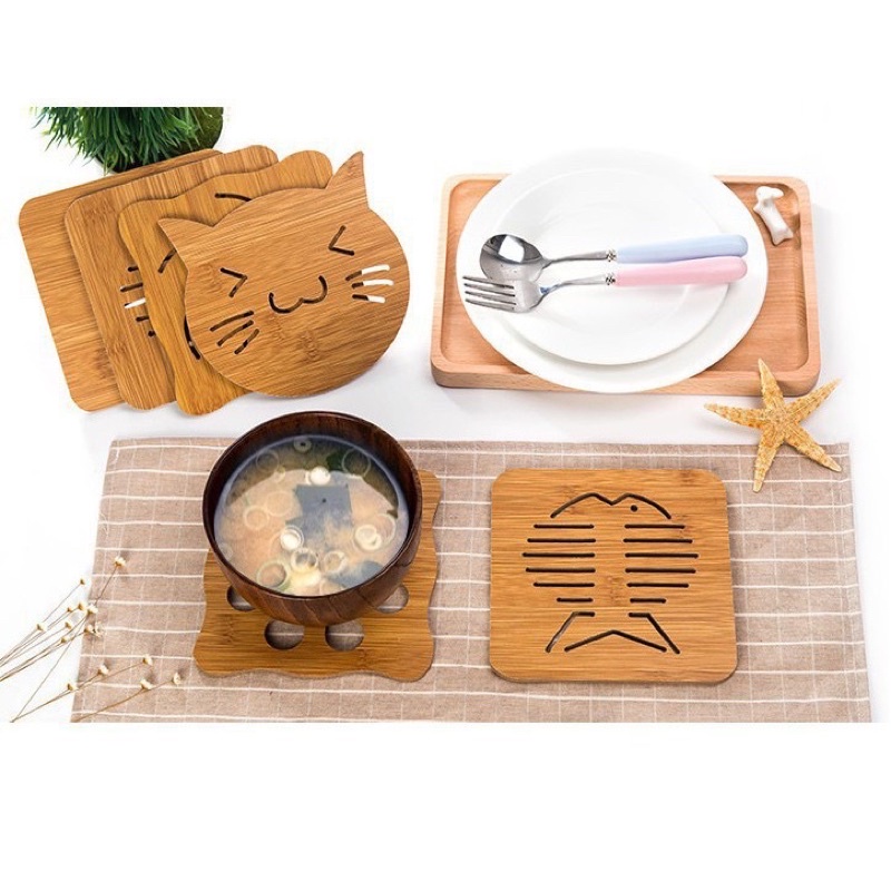 Nhà cửa & Đời sống > Bộ đồ bàn ăn > Khay, tấm lót bàn ăn || Miếng lót nồi bằng gỗ cách nhiệt nhiều hình ngộ nghĩnhCòn hàng