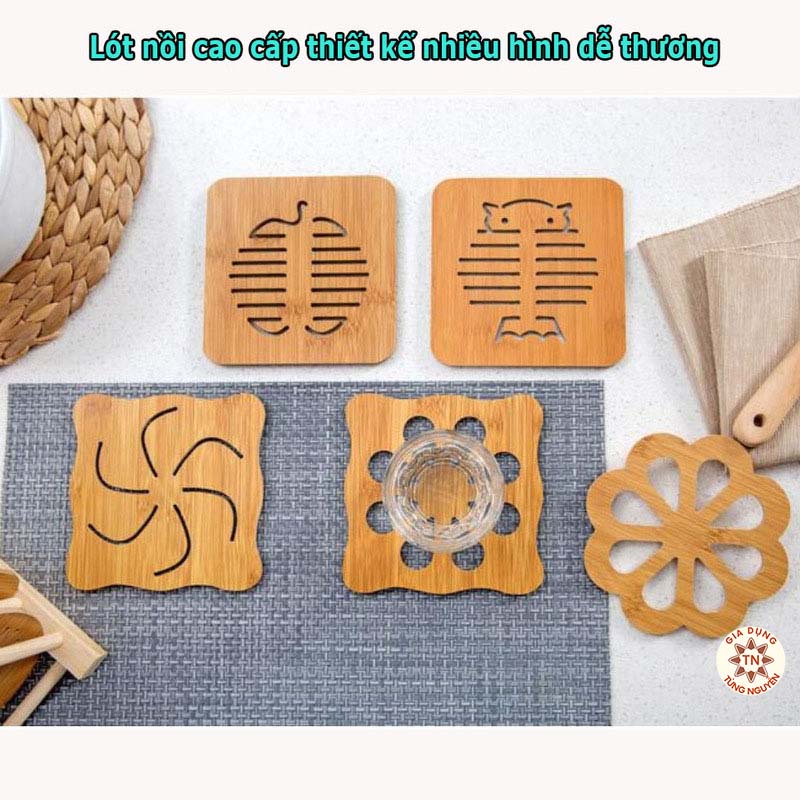 Với kích thước vuông, gọn, được khắc các họa tiết ngộ nghĩnh đẹp mắt, đế lót nồi bằng gỗ cũng là 1 vật dụng trang trí giúp cho bàn ăn của gia đình bạn thêm sinh động và lạ mắt.
