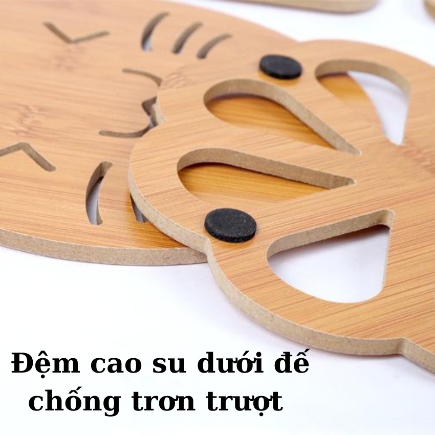 Miếng lót nồi bằng gỗ chịu nhiệt tốt, tấm lót ly, lót cốc chống trơn trượt, hình thú dễ thương